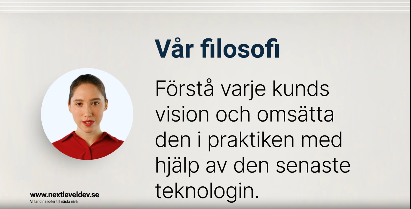 Vi är glada att kunna erbjuda Synthesia till våra kunder, vilket gör det möjligt för er att skapa engagerande och professionella videor med hjälp av AI-teknik. Genom att integrera Synthesia i er kommunikationsstrategi kan ni effektivisera videoproduktionen och nå ut till en bredare publik på ett kostnadseffektivt sätt.